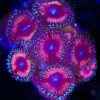 They are Photosynthetic do not need to be feed but do love to eat, we recommend feeding live phyto and reef roids. They do well in a variety of placement in the tank, under lower lights they will stretch and get larger with less color. Under high light they grow close and tight to the rock with smaller heads but much brighter color. They like moderate flow and this helps to keep their underlying tissue free from detritus buildup. We recommend keeping your tank parameters close natural sea water conditions, but zoanthids like these ones can thrive under less than ideal conditions. They will actually grow faster with higher nitrates and phosphate levels so they make an ideal candidate for low maintenance aquariums.