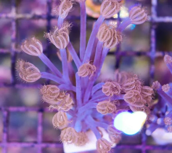Cespitularia are one of the more difficult to find soft corals in the hobby. They are similar to Xenia and the blue Cespitularia are often referred to as Blue Xenia. They are generally available in blue or purple colour morphs. Long elegant polyps sprout from a central stalk and will add beautiful movement to an aquarium. Because it grows from a central stalk rather than spreading like Xenia, they are less likely to grow out of control.
