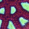 Cyphastrea corals come in a wide variety of colour patterns but all have a single colour encrusting base with contrasting coloured polyps. The different colour morphs of Cyphastrea available include such names as Meteor Shower, Bling Bling and Kermit the Frog. The Meteor Shower morph is generally regarded as the first widely available variation in the saltwater hobby.