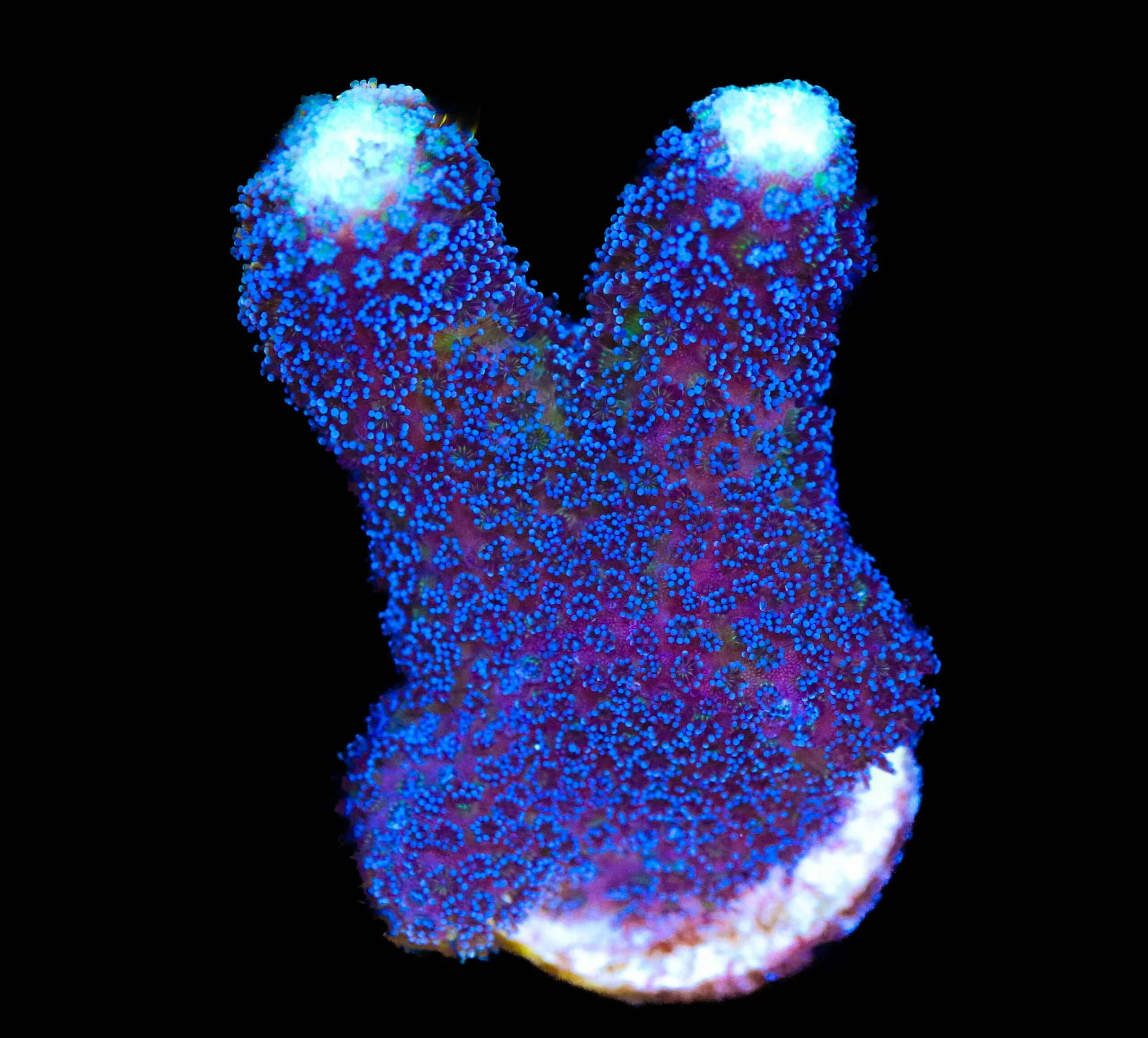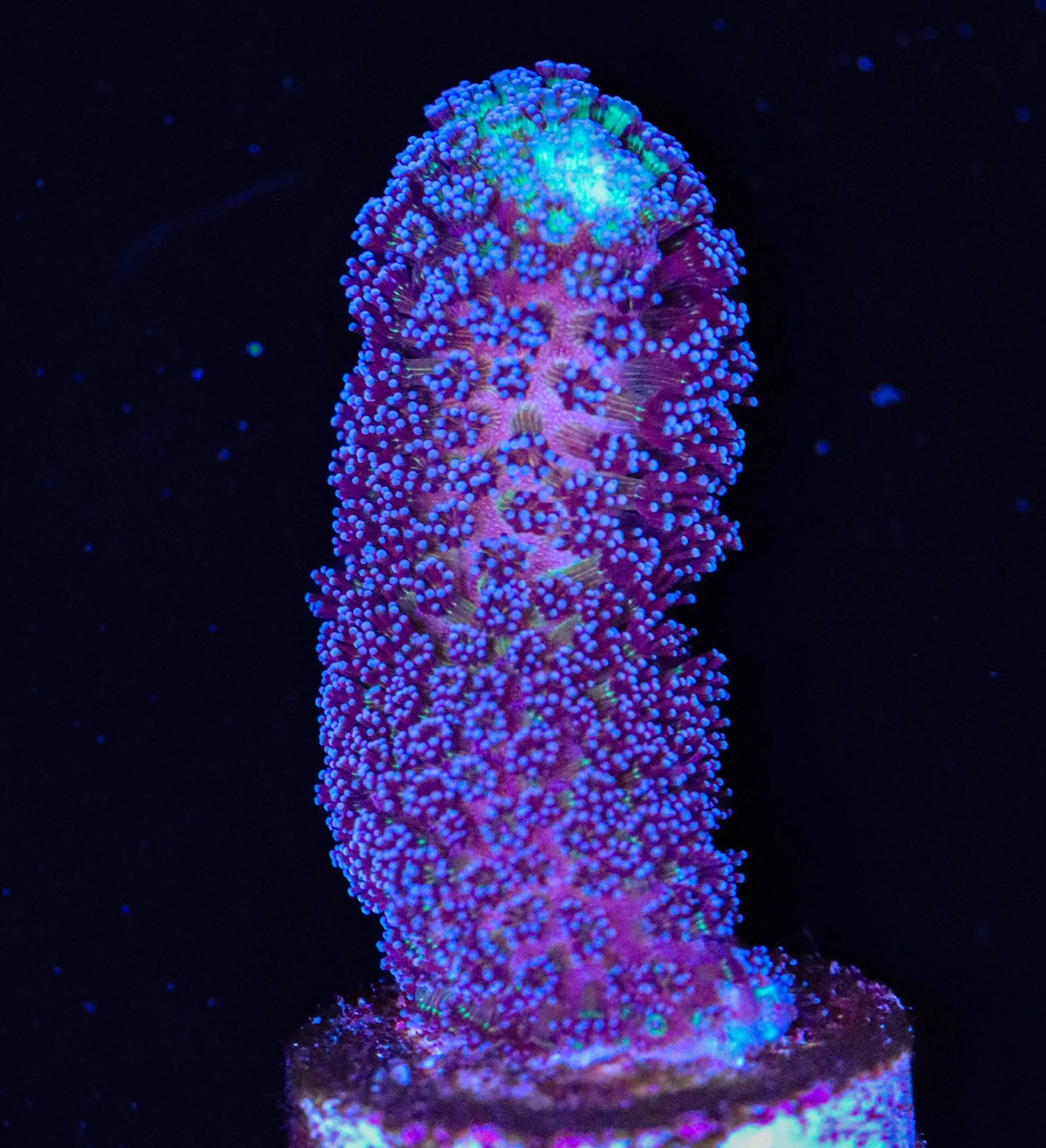 Stylophora are available in many different colourations with green and purple being the most common and pink and blue being less widely available. Like many SPS corals, it grows as a branching colony with a single frag capable of growing into an entire colony relatively quickly for an SPS coral. Like other SPS corals growth may start slow but become exponential once the coral becomes established. The colonies will often take on a rounded shape but this is dependent on many factors such as lighting and water flow.