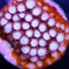 Cyphastrea corals come in a wide variety of colour patterns but all have a single colour encrusting base with contrasting coloured polyps. The different colour morphs of Cyphastrea available include such names as Meteor Shower, Bling Bling and Kermit the Frog. The Meteor Shower morph is generally regarded as the first widely available variation in the saltwater hobby.