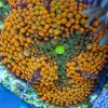 Let’s face it, all torch corals are beautiful but there are some that are just truly awe inspiring. The Holy Grail Torch Coral is one of those corals. With its bright yellow tentacles and blue or purple tips there really is nothing like it. While they are one of the more expensive varieties of torch corals, their beauty makes them worth the price and they can make any reef tank a standout. Like all torches, they are a colonial coral and grow through splitting, with a single head slowly dividing into two and like all LPS corals, they grow a stony skeleton made out of sodium bicarbonate.
