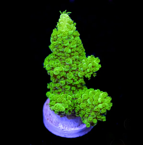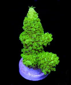 The Green Bali Slimer is photosynthetic and is able to use aquarium lighting to meet its energy needs. It can, however, be fed SPS specific food such as Vitalis SPS food if desired. Like the majority of SPS corals the Green Bali Slimer is quite easy to frag, simply use a pair of coral cutters to cut off a branch and glue it to a frag plug. Just be prepared for its namesake slime! The Green Bali Slimer is a reef tank classic and adds a splash of vibrant green to any home aquarium.