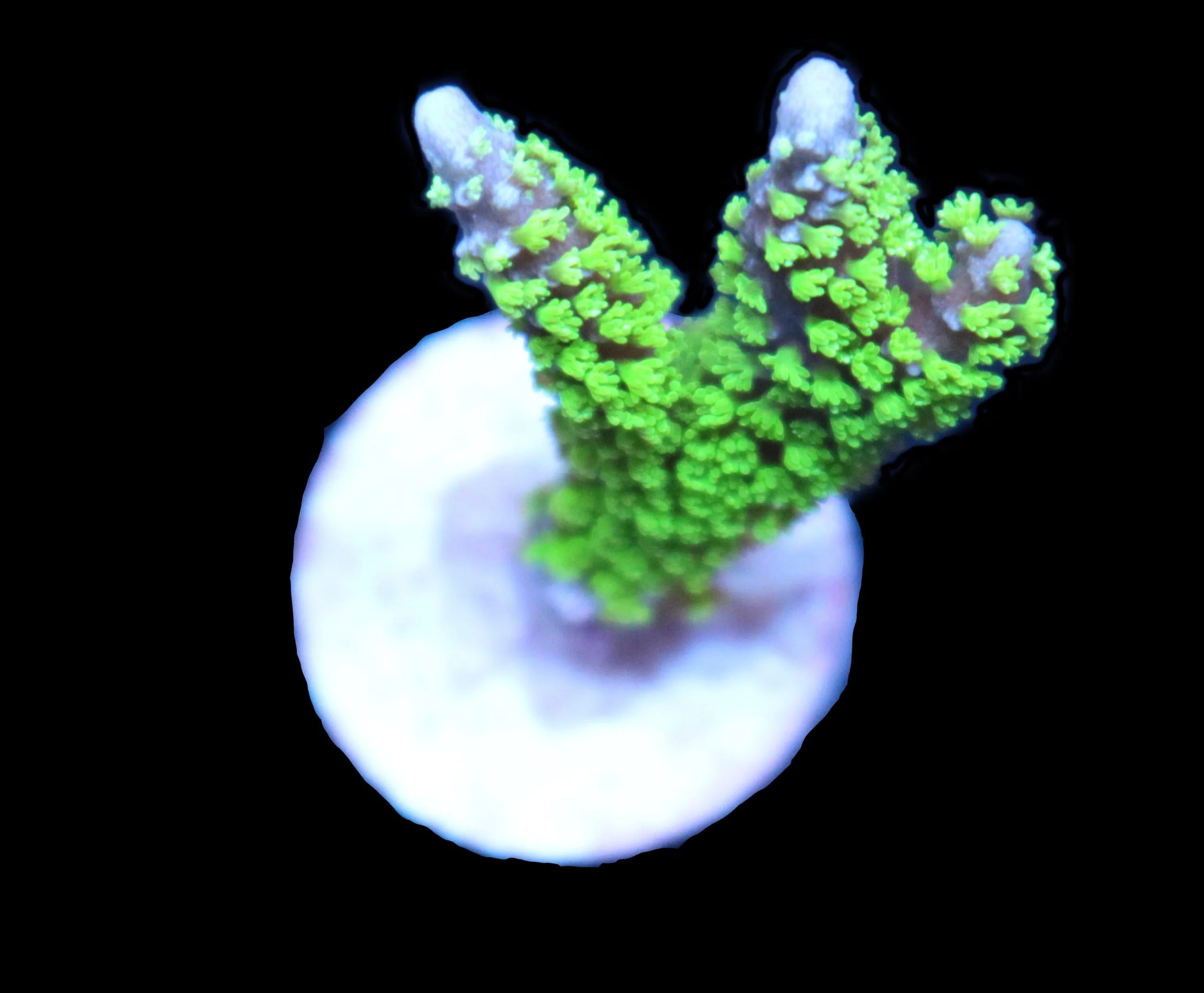 Montipora Stellata are photosynthetic and feeding is not required. However, occasional feeding with an SPS coral food will improve growth rate and may improve colouration. Fragging is very easy, a branch can simply be cut with coral cutters and glued to a frag plug. Many hobbyists will glue the new frag to the plug horizontally to maximize the surface area exposed to light.