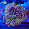 Branching Hammer Corals are probably one of the most recognizable and popular corals in the saltwater hobby and it is easy to see why. It gets its name from the hammer shaped tips on its tentacles and is sometimes referred to as Anchor Coral. Hammer Corals come in two varieties, branching and wall, with the branching variety being regarded as generally easier to keep. Branching Hammer Corals come in a wide variety of colours such as green, purple, blue, pink, gold and orange. There are also splatter varieties that display more than one colour. They are a colonial coral and generally grow through the splitting of their heads, with one head slowly pinching and splitting into two.