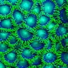 Cyphastrea corals come in a wide variety of colour patterns but all have a single colour encrusting base with contrasting coloured polyps. The different colour morphs of Cyphastrea available include such names as Meteor Shower, Bling Bling and Kermit the Frog. The Meteor Shower morph is generally regarded as the first widely available variation in the saltwater hobby.