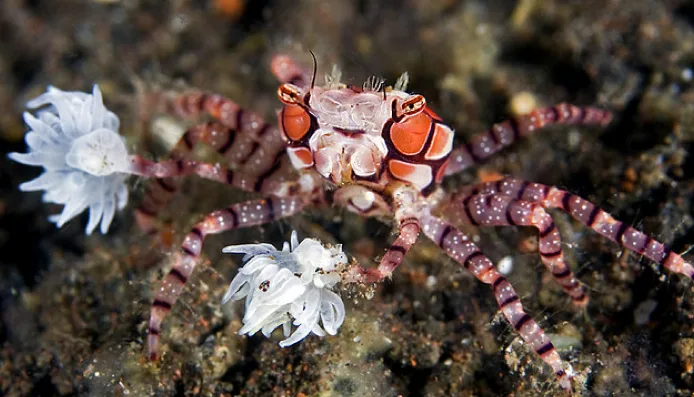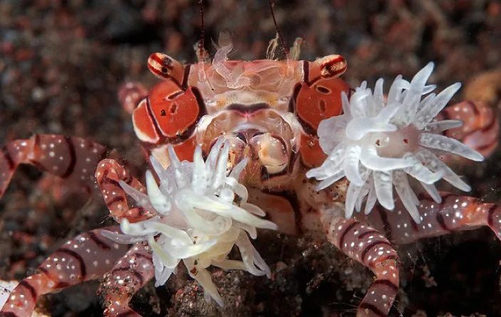 All it takes is one look at a pom pom crab and it’s easy to see where it gets its name from. While it might look like it is holding two cheerleading pom poms they are actually tiny anemones, hence its