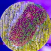 Cyphastrea corals come in a wide variety of colour patterns but all have a single colour encrusting base with contrasting coloured polyps. The different colour morphs of Cyphastrea available include such names as Meteor Shower, Bling Bling and Kermit the Frog. The Meteor Shower morph is generally regarded as the first widely available variation in the saltwater hobby.