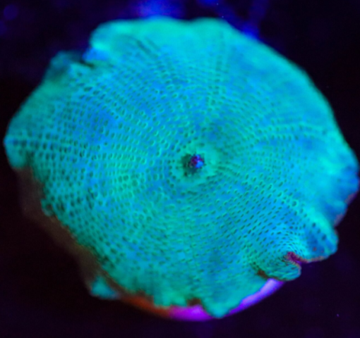 Discosoma Mushrooms are a Corallimorph that is found extensively throughout most coral reefs. They are also sometimes called Mushroom or Disc Anemones. They come in a wide variety of colours and patterns with green, red, blue and purple being the most commonly available. They multiply by leaving a small piece of themselves behind as they move very slowly around the tank. This new piece will then grow into a new mushroom. Don’t worry about them moving all around the tank however, as they may only move a few inches a year.