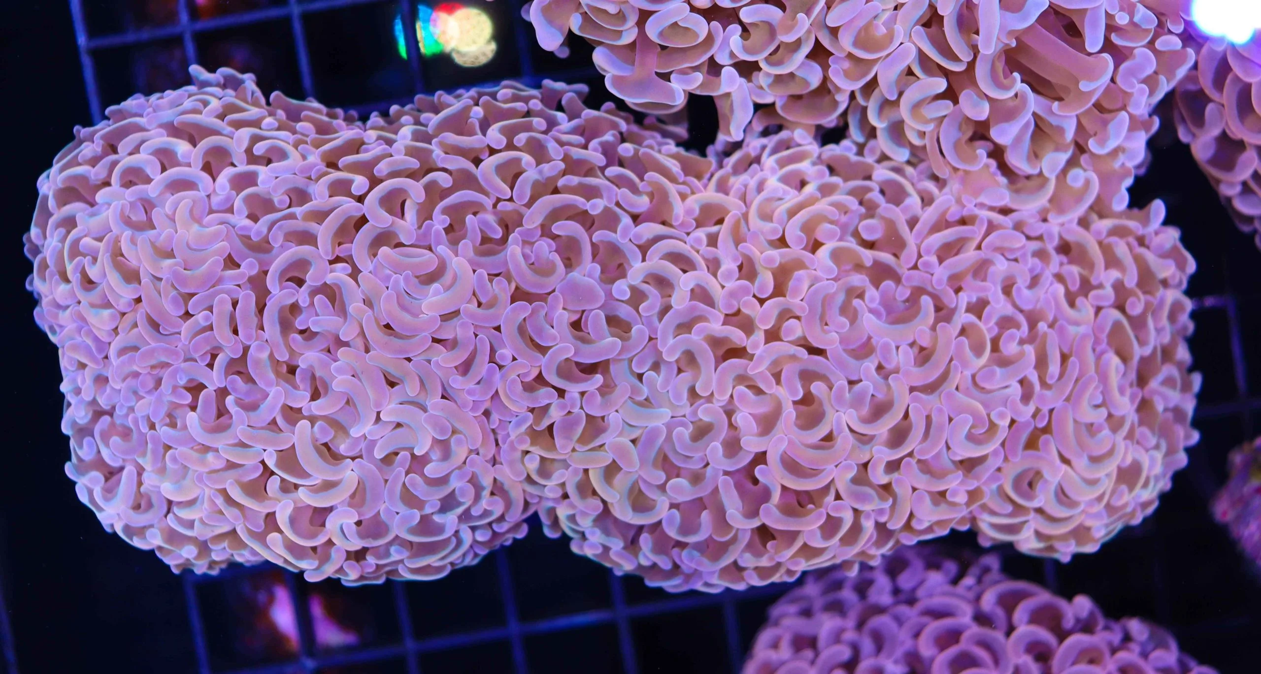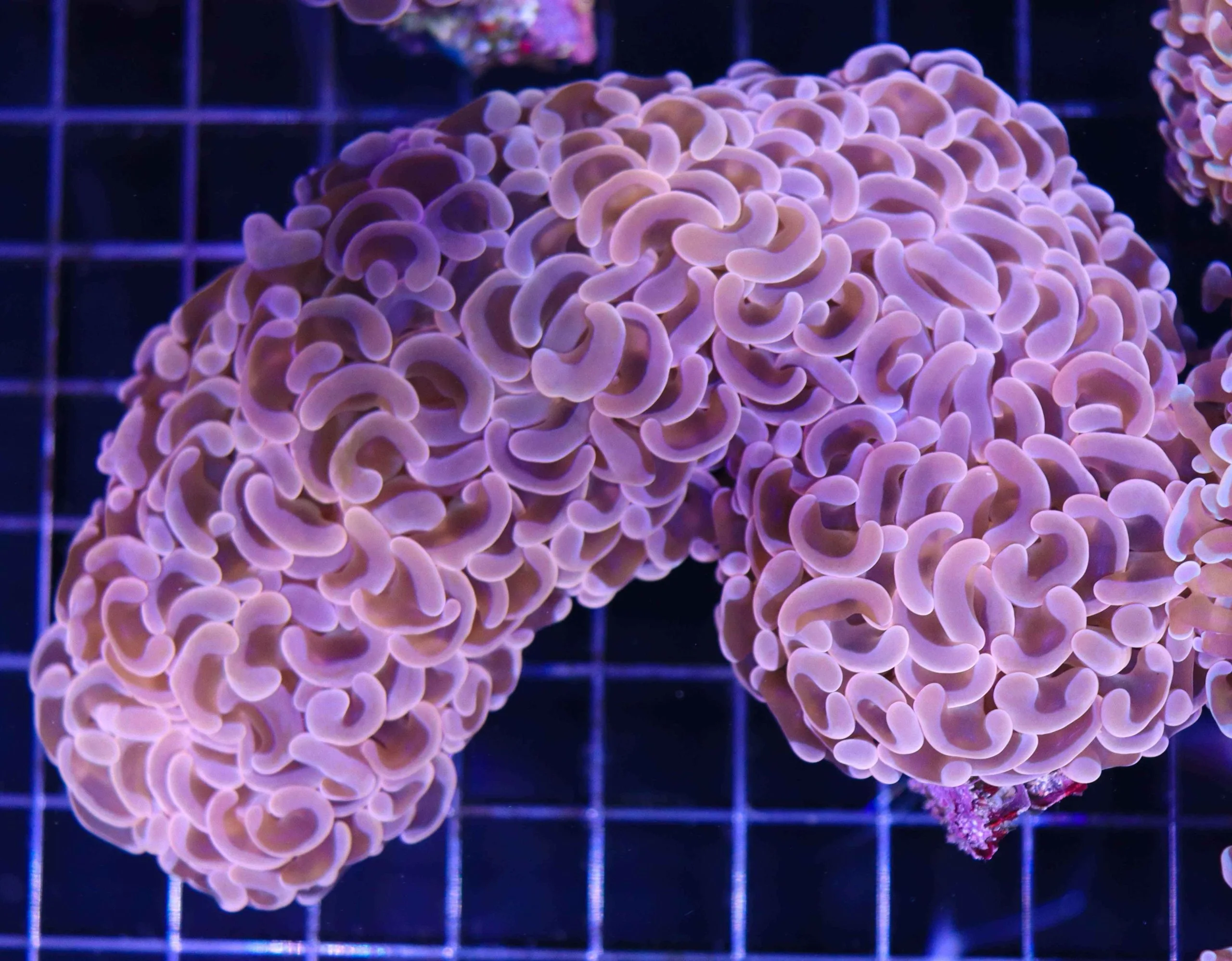 The Wall Hammer Coral is a somewhat less well known cousin of the Branching Hammer but it is beautiful in its own right. It is sometimes known as the Anchor Coral due to the anchor shaped tips on its tentacles. The Wall Hammer Coral doesn’t branch, but rather slowly grows from each end. This means that Wall Hammers tend to be roughly linear in shape, as opposed to the more rounded branching variety. They are slower growing than the branching variet. One advantage of Wall Hammers is that their colours tend to be regarded as more varied and vibrant. They can be found in colours such as green, blue, gold, orange and purple.