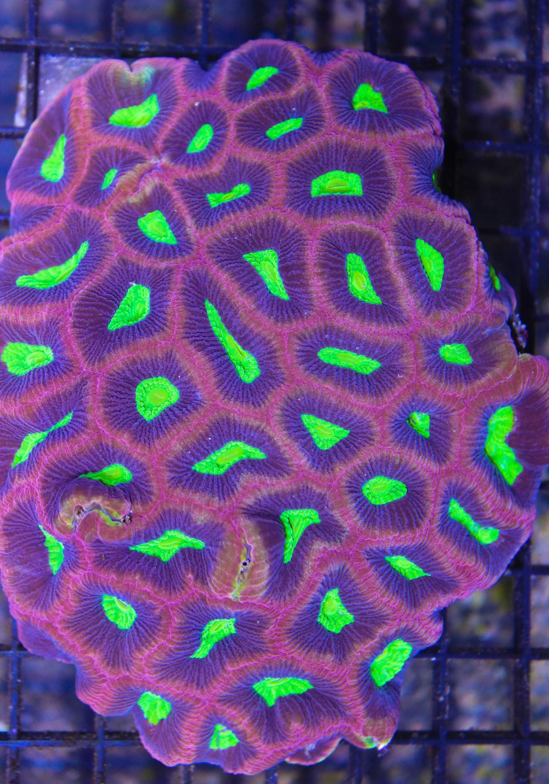 Probably the most easily recognizable favia ! Found only in Australia and characterized by distinct purple or yellow mouth with purple rim.