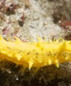 The Yellow Sea Cucumber when feeding extends its branchy feeding arms into the current and is one of the most beautiful filter feeders. We only recommend these animals for established reef aquarium.