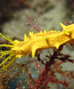 The Yellow Sea Cucumber when feeding extends its branchy feeding arms into the current and is one of the most beautiful filter feeders. We only recommend these animals for established reef aquarium.